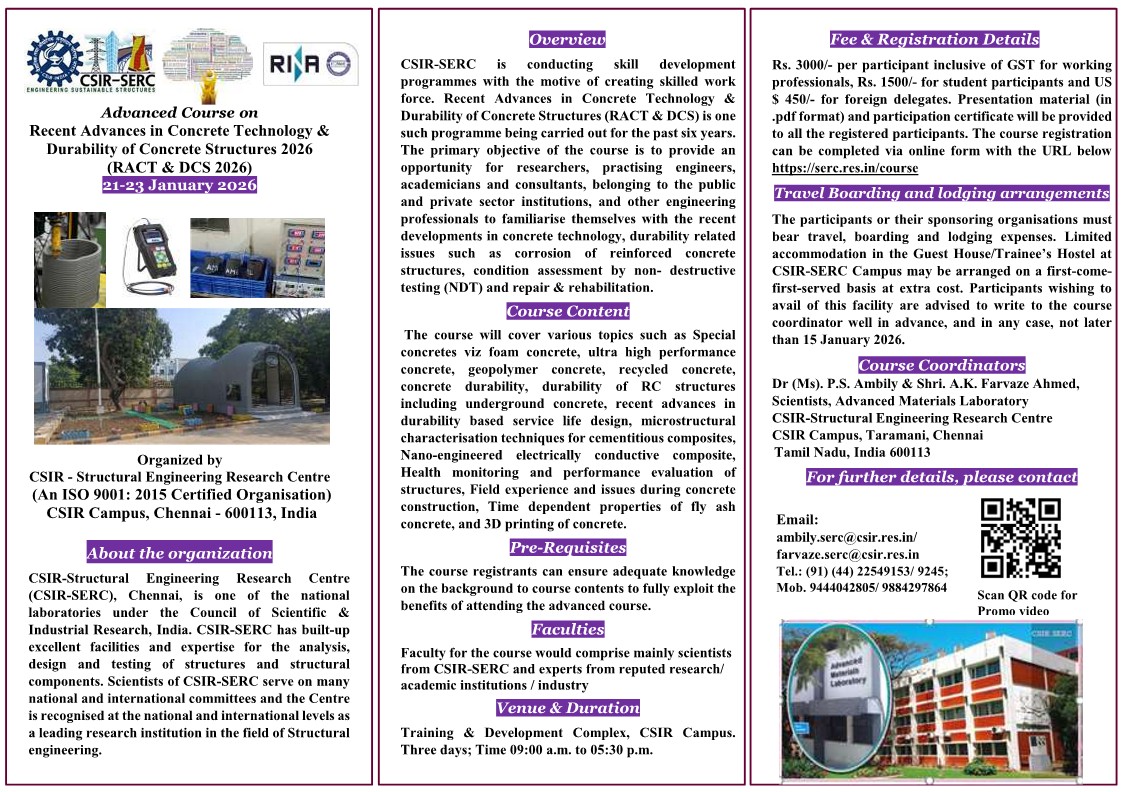 Recent Advances in Concrete Technology and Durability of Concrete Structures (RACT & DCS 2026), 21-23 January 2026