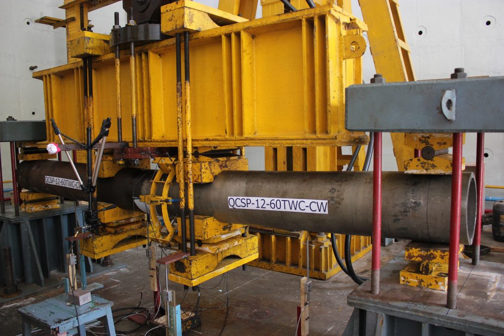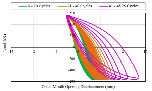 Fracture studies were carried out on bi-metallic pipe (made of SA 508 Gr.3 Cl-1 carbon steel and SA312 Type 304LN stainless steel) weld joints of 324 mm nominal outer diameter having circumferential notch. The initial notch was located in the different regions of the weld joints such as weld centre, buttering, heat affected zone, and base metals (carbon steel and stainless steel). During the fracture (monotonic/cyclic) tests, load, load-line displacement (LLD), crack mouth opening displacement (CMOD), deflection of the pipes (at five locations) and the surface crack growth were continuously monitored